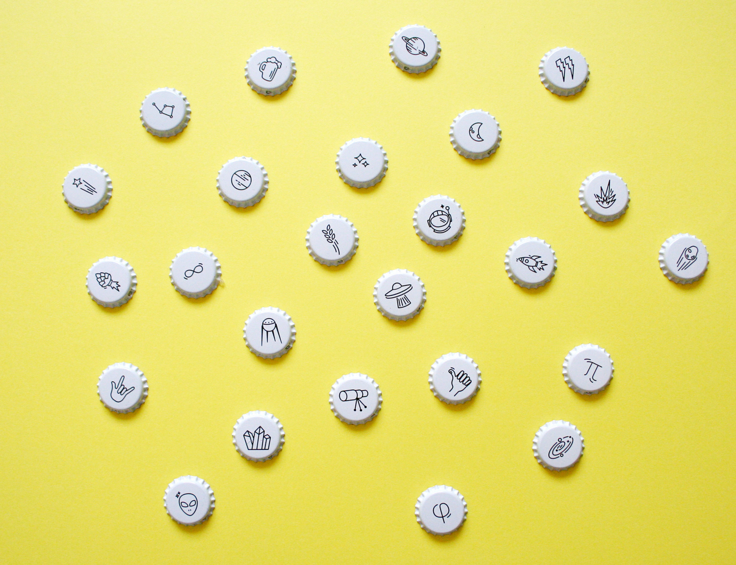 Identity for a craft brewery near Paris. The three founders are passionate about astronomy, science-fiction and rock music. A system of fun icons, based on these themes, was created to enrich the identity.