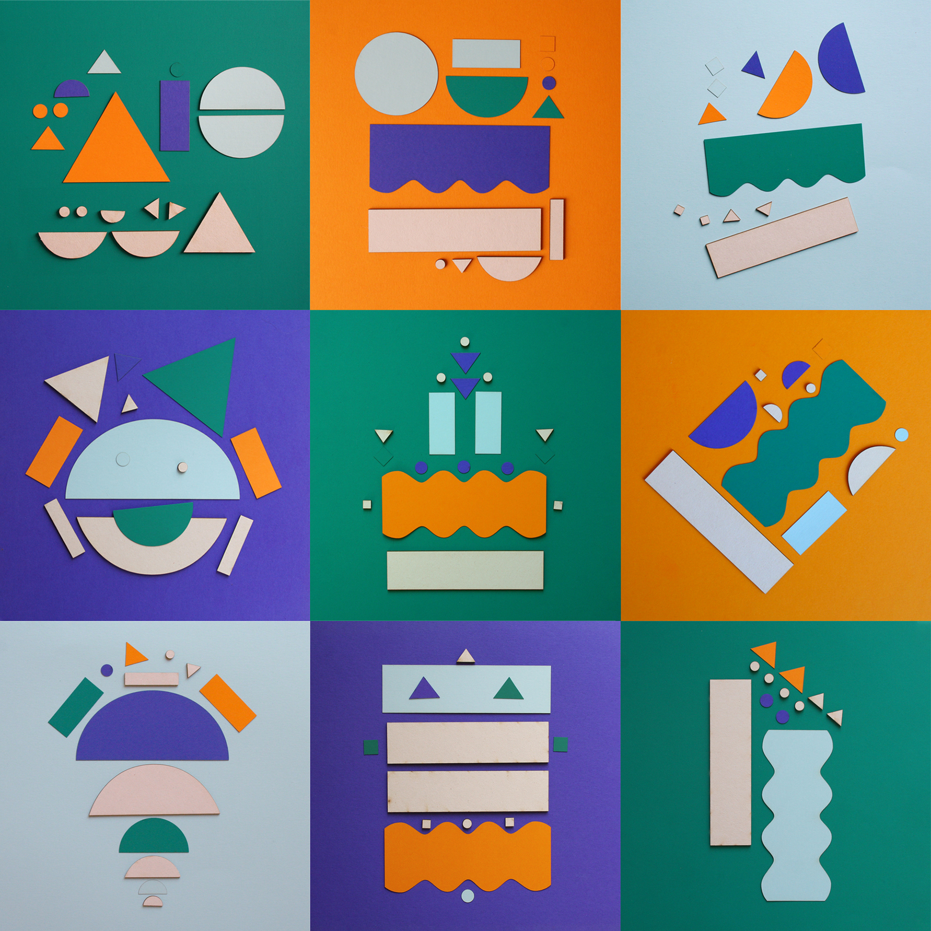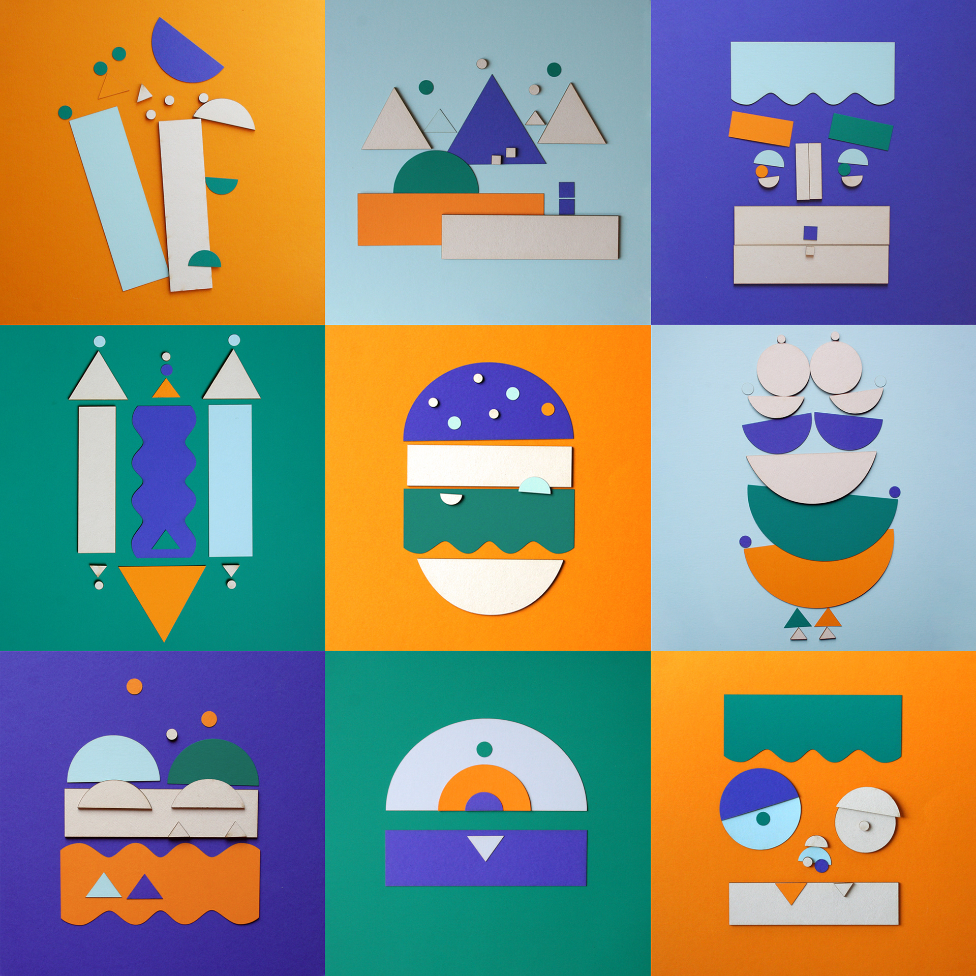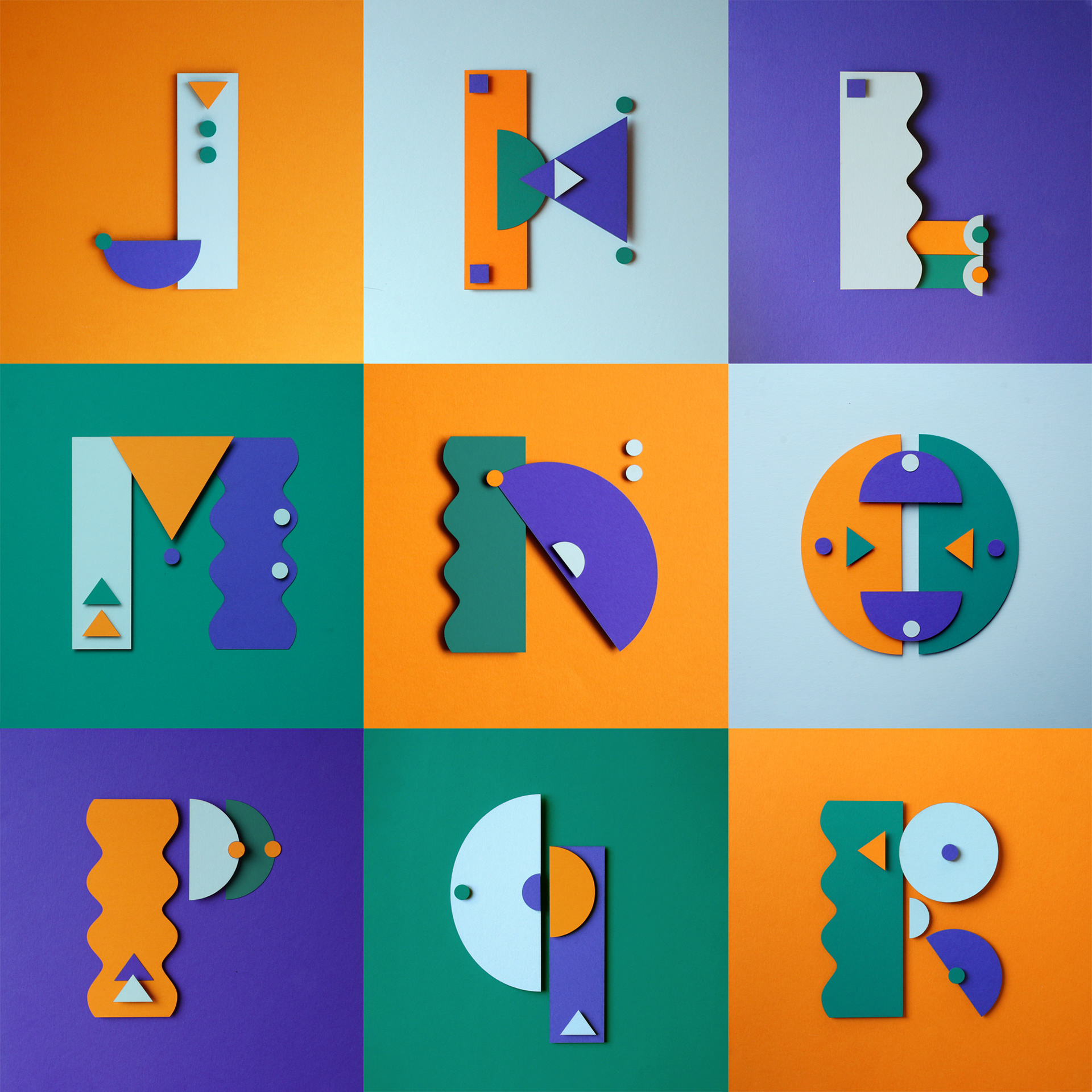 With the "36days of type" iniative as a pretext, i develop an alphabet using a limited vocabulary of paper shapes, in four colours. With the shapes used for each letter i create every time a different illustration or composition. That was fun!